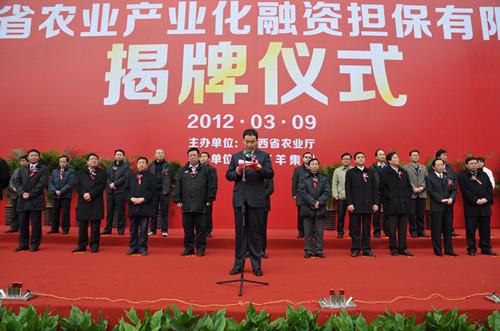 省政府、省財(cái)政廳、省金融辦、省農(nóng)業(yè)廳、銀行系統(tǒng)領(lǐng)導(dǎo)以及各市分管農(nóng)業(yè)產(chǎn)業(yè)化工作的負(fù)責(zé)人;陜西省農(nóng)業(yè)產(chǎn)業(yè)化國家級(jí)龍頭企業(yè)負(fù)責(zé)人;陜西省農(nóng)業(yè)產(chǎn)業(yè)化龍頭企業(yè)協(xié)會(huì)理事單位負(fù)責(zé)同志一起見證了陜西省農(nóng)業(yè)產(chǎn)業(yè)化融資擔(dān)保公司成立揭牌的隆重時(shí)刻。