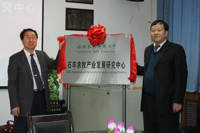 4月2日下午,石羊集團(tuán)與西北農(nóng)林科技大學(xué)動物科技學(xué)院在動科學(xué)院一樓會議室舉行“西北農(nóng)林科技大學(xué)-石羊農(nóng)牧產(chǎn)業(yè)發(fā)展研究中心”揭牌儀式,集團(tuán)總裁常青山、副總裁兼農(nóng)牧產(chǎn)業(yè)總經(jīng)理韓春元、飼料事業(yè)部總經(jīng)理李鵬華、西北農(nóng)林科技大學(xué)校長助理、國家“千人計劃”入選者趙辛教授、教務(wù)處處長陳玉林教授、學(xué)校科研處孫楠副處長、動科學(xué)院院長姚軍虎教授、書記閆祖書老師、呼天明副院長、孫超副院長等20多名專家學(xué)者參加了揭牌儀式。揭牌儀式由閆祖書書記主持。