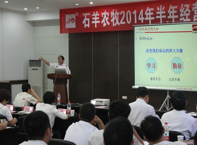 7月3日,石羊集團(tuán)農(nóng)牧產(chǎn)業(yè)2014年上半年經(jīng)營檢討會在臨潼隆重召開。集團(tuán)總裁常青山、集團(tuán)副總裁兼農(nóng)牧公司總經(jīng)理韓春元出席會議,各事業(yè)部總經(jīng)理、各線路負(fù)責(zé)人、各子分公司副總經(jīng)理以上人員及財務(wù)線路近百人參加會議。