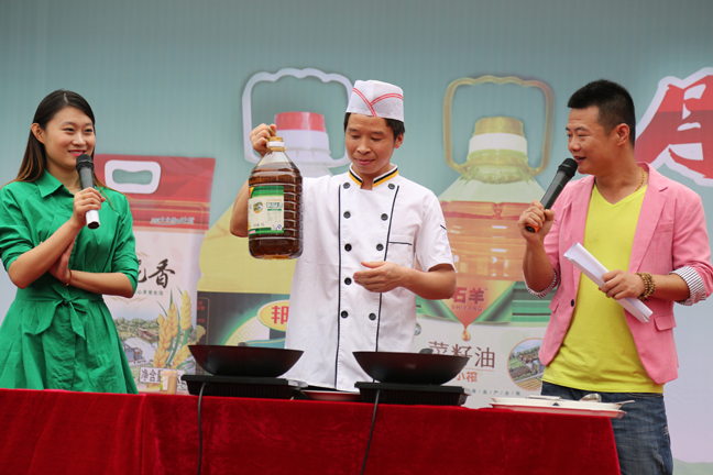 9月6日至7日,石羊食品(石羊安心油、肉品、大米、邦淇食用油)2014中秋大型路演、品牌宣傳推廣活動(dòng)在電子城高新人人樂(lè)門(mén)前廣場(chǎng)盛大舉行,總裁常青山、油脂事業(yè)部總經(jīng)理孔紅民、副總經(jīng)理王曉勇、總裁助理趙超等親臨現(xiàn)場(chǎng)。王曉勇代表食品版塊發(fā)表了熱情洋溢的講話(huà),他在簡(jiǎn)要介紹了集團(tuán)及食品產(chǎn)業(yè)的現(xiàn)狀后,對(duì)長(zhǎng)期關(guān)心、支持石羊發(fā)展的社會(huì)各界人士表示了衷心感謝并預(yù)祝各位闔家團(tuán)圓、中秋快樂(lè)!