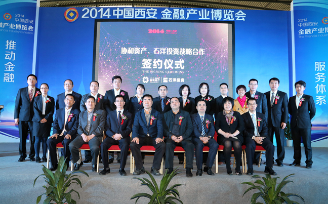 10月12日,陜西石洋投資管理有限公司(石洋投資)與陜西協(xié)和資產(chǎn)管理有限公司(協(xié)和資產(chǎn))戰(zhàn)略合作簽約儀式在“2014中國•西安金融產(chǎn)業(yè)博覽會”主會場曲江國際會展中心隆重舉行。石羊集團董事長魏存成、協(xié)和控股董事長成建禮出席并見證簽約儀式,雙方其他領(lǐng)導(dǎo)和嘉賓共同參加了會議。