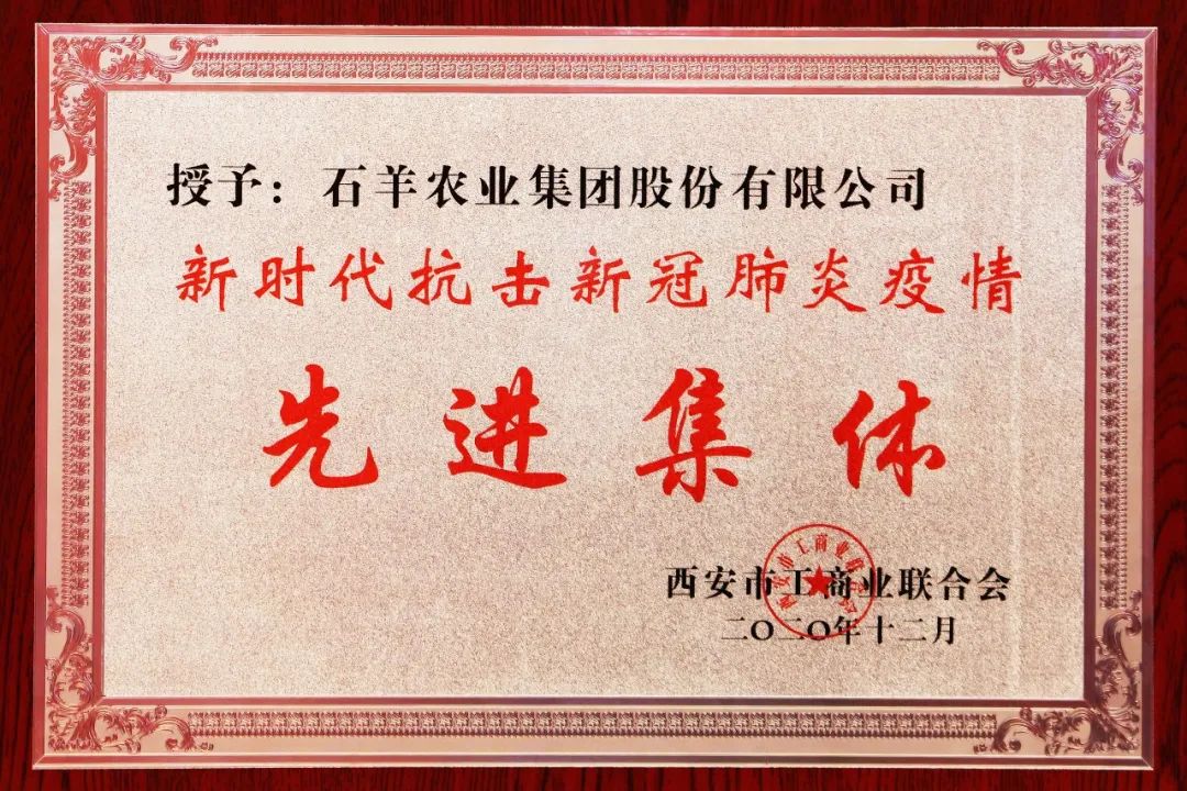 同日,西安市工商業(yè)聯(lián)合會成立70周年紀念大會暨十四屆四次執(zhí)委會議上傳來喜報,石羊集團被授予新時代抗擊新冠肺炎疫情先進集體和新時代助力民生發(fā)展先進集體殊榮。