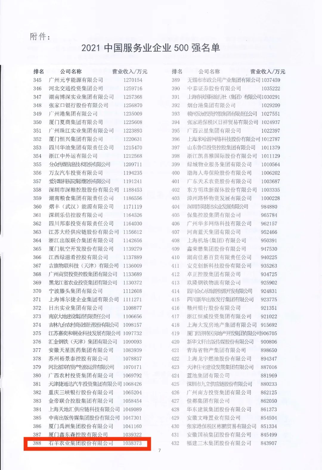 9月25日,在吉林長春舉行的2021中國500強企業(yè)高峰論壇上,石羊集團憑借上年度優(yōu)異表現(xiàn)首次入圍中國服務業(yè)企業(yè)500強,名列榜單第388位。