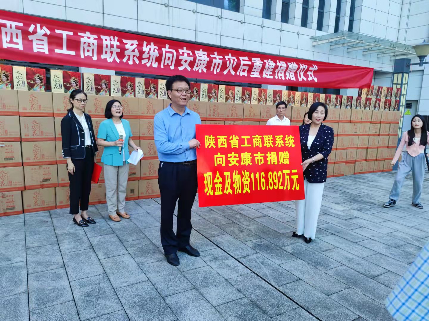 9月30日,陜西省工商聯(lián)系統(tǒng)向安康市災(zāi)后重建捐贈(zèng)儀式在安康舉行。省工商聯(lián)黨組成員、副主席郭慧娥,安康市委常委、統(tǒng)戰(zhàn)部部長(zhǎng)雷西明,安康市政協(xié)副主席、工商聯(lián)主席孟平等領(lǐng)導(dǎo)出席捐贈(zèng)儀式。