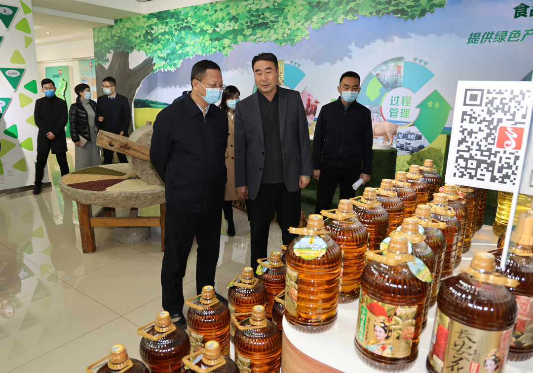 康軍一行來到石羊集團展廳,聽取了集團黨委書記、董事長魏存成對企業(yè)發(fā)展歷程及企業(yè)運營情況的介紹。康軍充分肯定了石羊在經(jīng)開區(qū)產(chǎn)業(yè)帶動發(fā)展和保障民生方面所做工作,希望繼續(xù)發(fā)揮農(nóng)業(yè)、食品產(chǎn)業(yè)龍頭企業(yè)帶動作用,做大做強,助力經(jīng)開區(qū)高質(zhì)量發(fā)展。