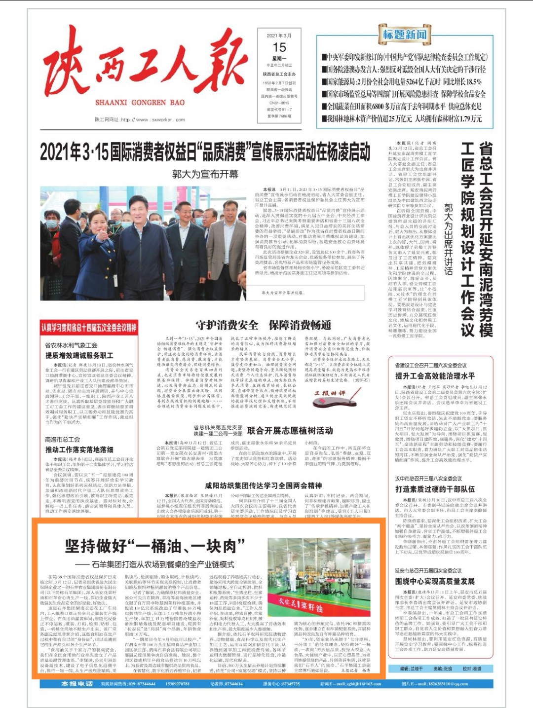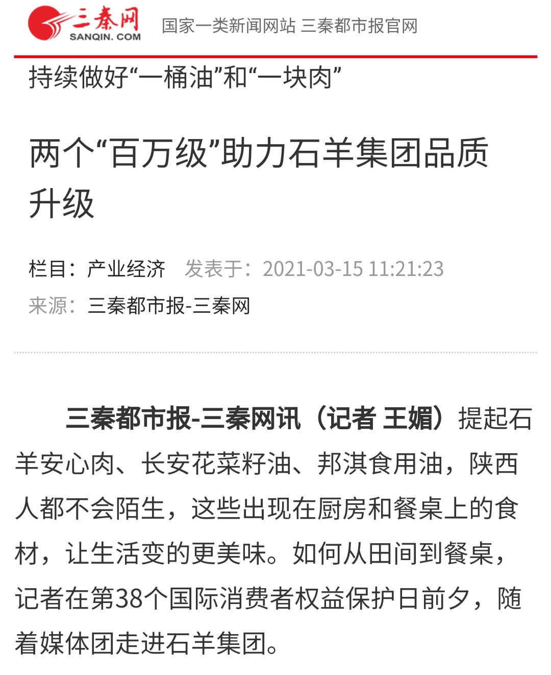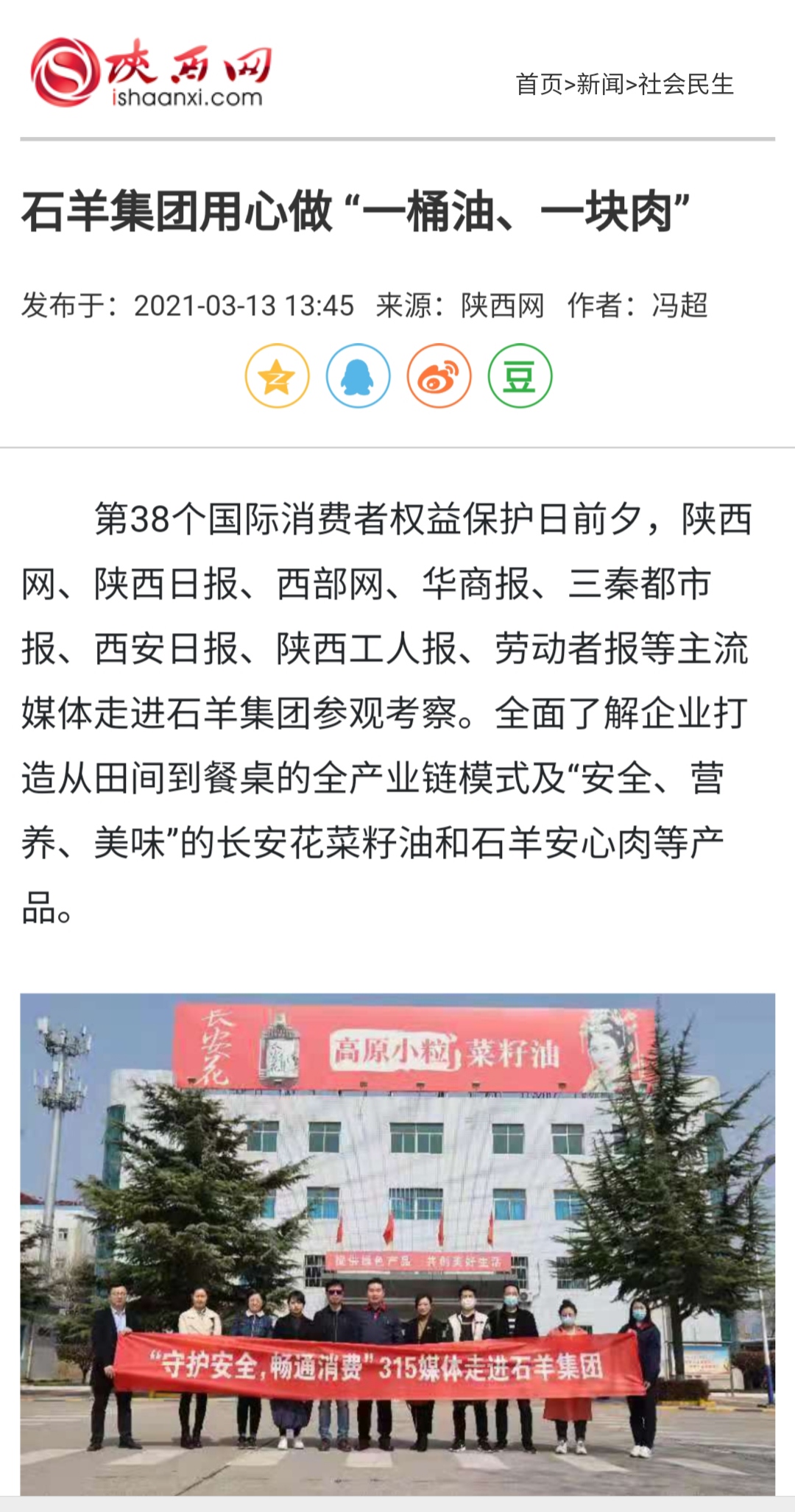 第39個國際消費者權(quán)益保護(hù)日前夕,陜西日報、西部網(wǎng)、陜西網(wǎng)、華商報、三秦都市報、西安日報、陜西工人報、勞動者報等主流媒體采訪團(tuán)走進(jìn)石羊集團(tuán)參觀,了解企業(yè)踐行2021年消費維權(quán)年主題“守護(hù)安全 暢通消費”舉措。