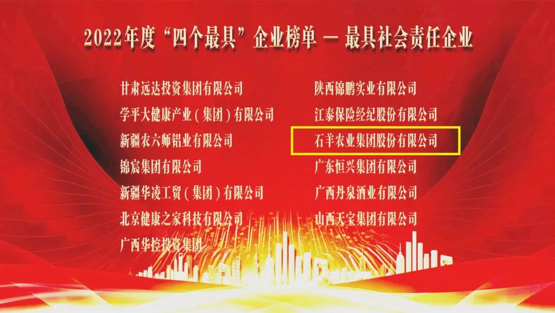 此次榮獲2022年度“最具社會(huì)責(zé)任企業(yè)”殊榮,再次彰顯了石羊集團(tuán)30余年來始終堅(jiān)守農(nóng)業(yè)報(bào)國、產(chǎn)業(yè)報(bào)國,堅(jiān)定做好食品、為客戶創(chuàng)造價(jià)值的同時(shí),積極履行社會(huì)責(zé)任,實(shí)現(xiàn)企業(yè)高質(zhì)量發(fā)展。