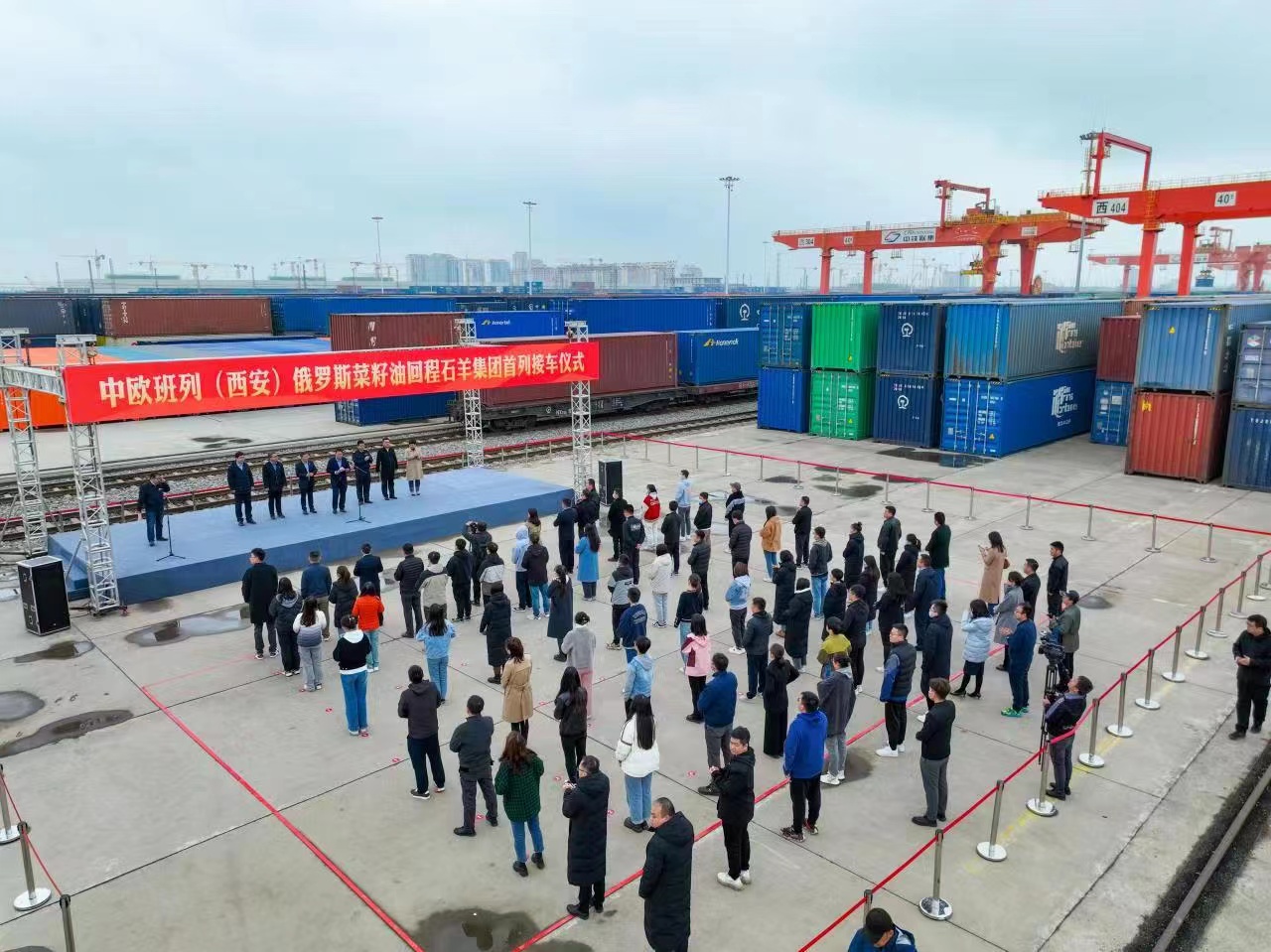 2023年4月24日,中歐班列長安號俄羅斯回程菜籽油石羊集團專列順利抵達西安國際港站。
