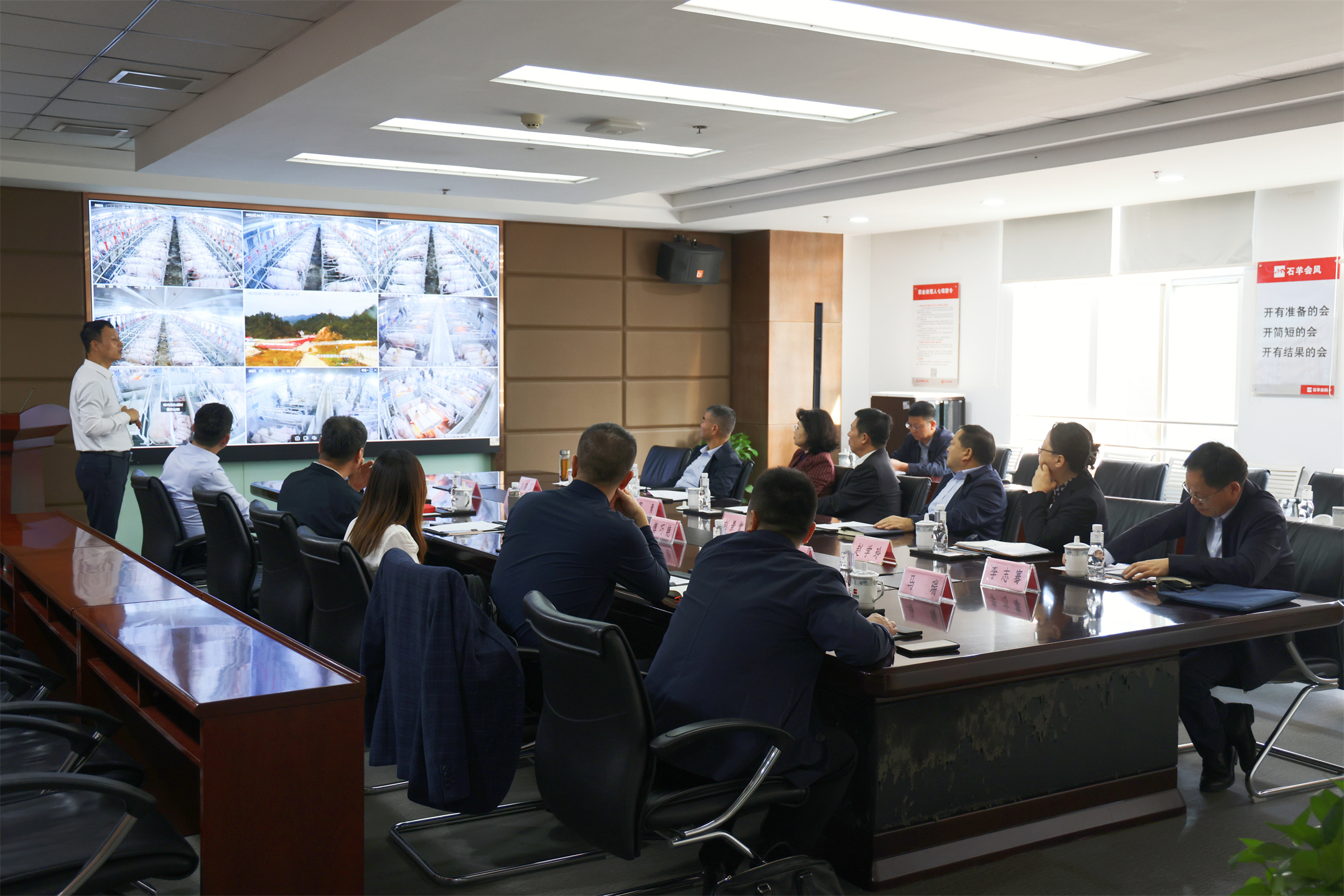 郭青一行先后在石羊食品產(chǎn)業(yè)園,了解入駐食品企業(yè)的生產(chǎn)經(jīng)營情況;在石羊集團文化展廳,詳細了解了石羊集團發(fā)展歷程及各產(chǎn)業(yè)發(fā)展現(xiàn)狀;通過云端遠程監(jiān)控查看養(yǎng)殖場實時畫面,了解自動化養(yǎng)殖流程及生產(chǎn)過程。參觀結(jié)束后舉行座談。