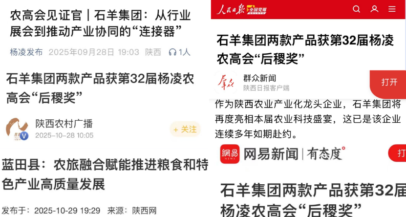 石羊集團(tuán)的亮眼表現(xiàn)和豐碩的榮譽(yù)也吸引了主流媒體的廣泛關(guān)注。人民日?qǐng)?bào)、農(nóng)民日?qǐng)?bào)、陜西日?qǐng)?bào)、陜西廣播電視臺(tái)、陜西農(nóng)村廣播、西安廣播電視臺(tái)、渭南廣播電視臺(tái)、楊凌電視臺(tái)、藍(lán)田縣廣播電視臺(tái)等中央、省、市、縣四級(jí)官方主流媒體,以及陜西網(wǎng)、鄉(xiāng)村振興新聞網(wǎng)、網(wǎng)易新聞網(wǎng)、騰訊新聞網(wǎng)等主流網(wǎng)絡(luò)媒體紛紛聚焦報(bào)道,使石羊集團(tuán)成為本屆農(nóng)高會(huì)上備受矚目的明星企業(yè),在眾多參展企業(yè)中脫穎而出,贏得了行業(yè)內(nèi)外的廣泛贊譽(yù)。五天時(shí)間,石羊集團(tuán)展位累計(jì)吸引100多萬人次來訪參觀,充分展現(xiàn)了企業(yè)的品牌影響力與號(hào)召力。